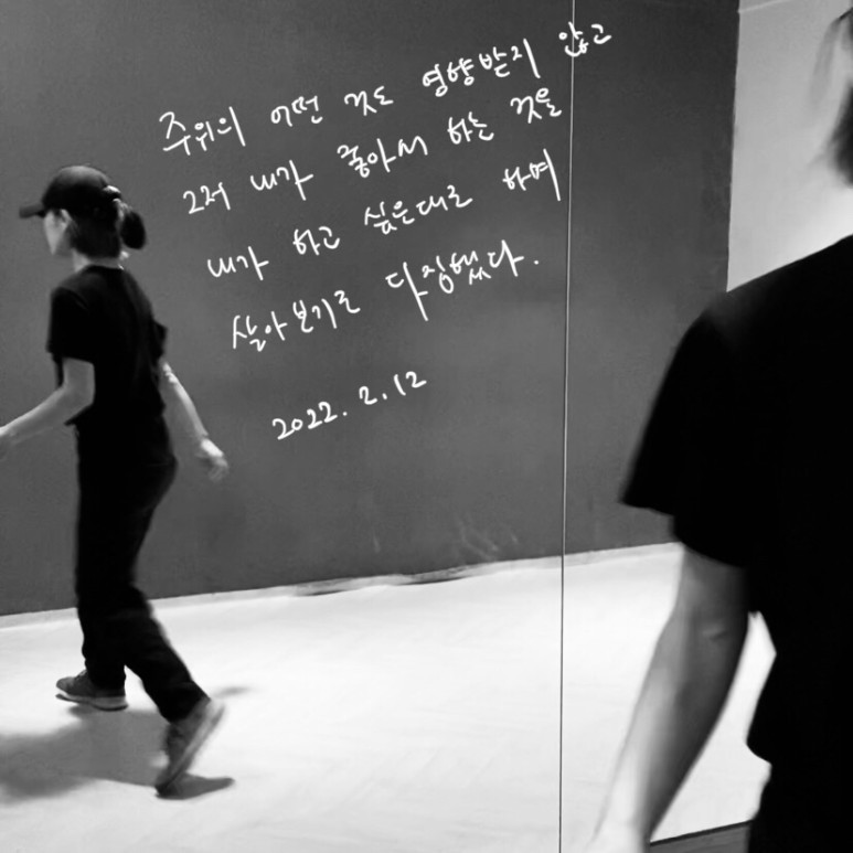 나 주말에 영상 촬영하려고 연습실 예약했어. 최근에 춤에 대해 느낀 걸 내 몸으로 실험해보려고 해. 음악과 춤을 온전히 즐기면서 영상을 찍어보고 싶어. 그렇게 춤추었을 때, 나에게 어떤 에너지가 나올지, 궁금하다.