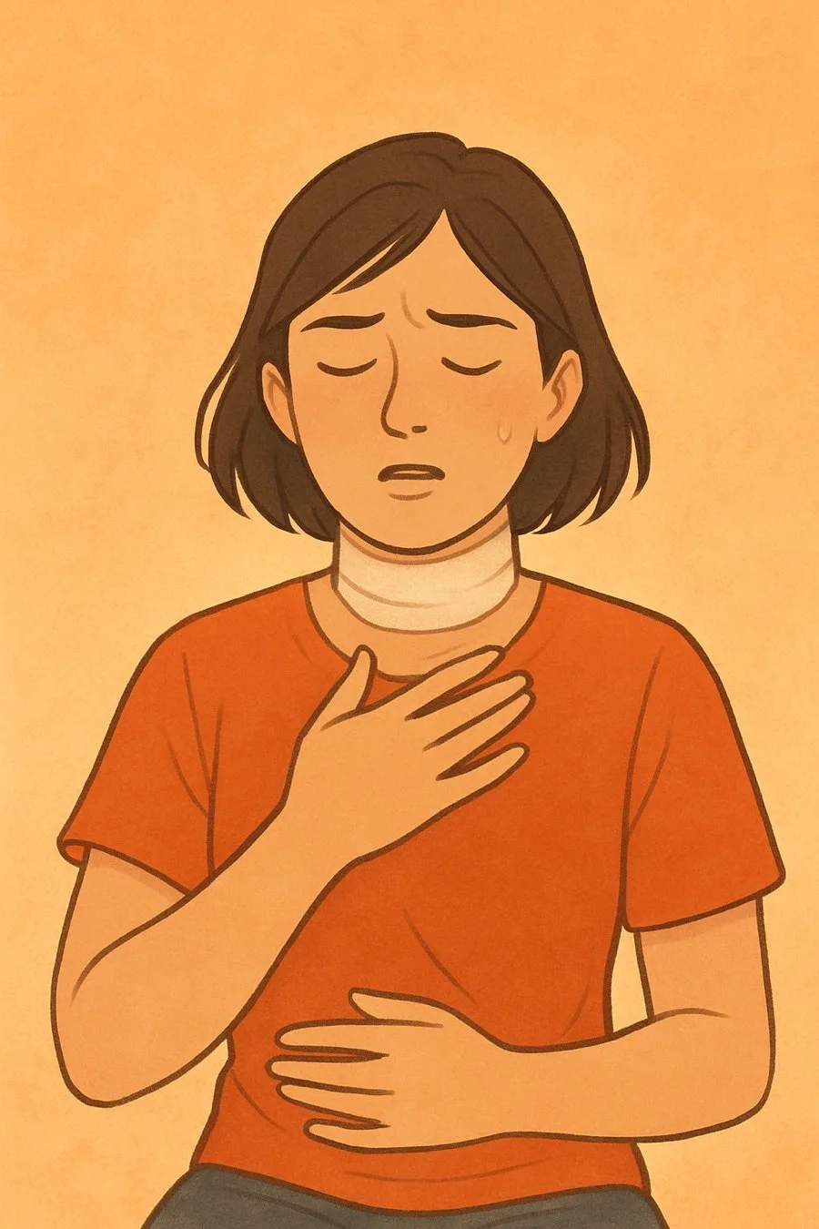 목이 조여 오는 듯한 감각이 시작됐어요.