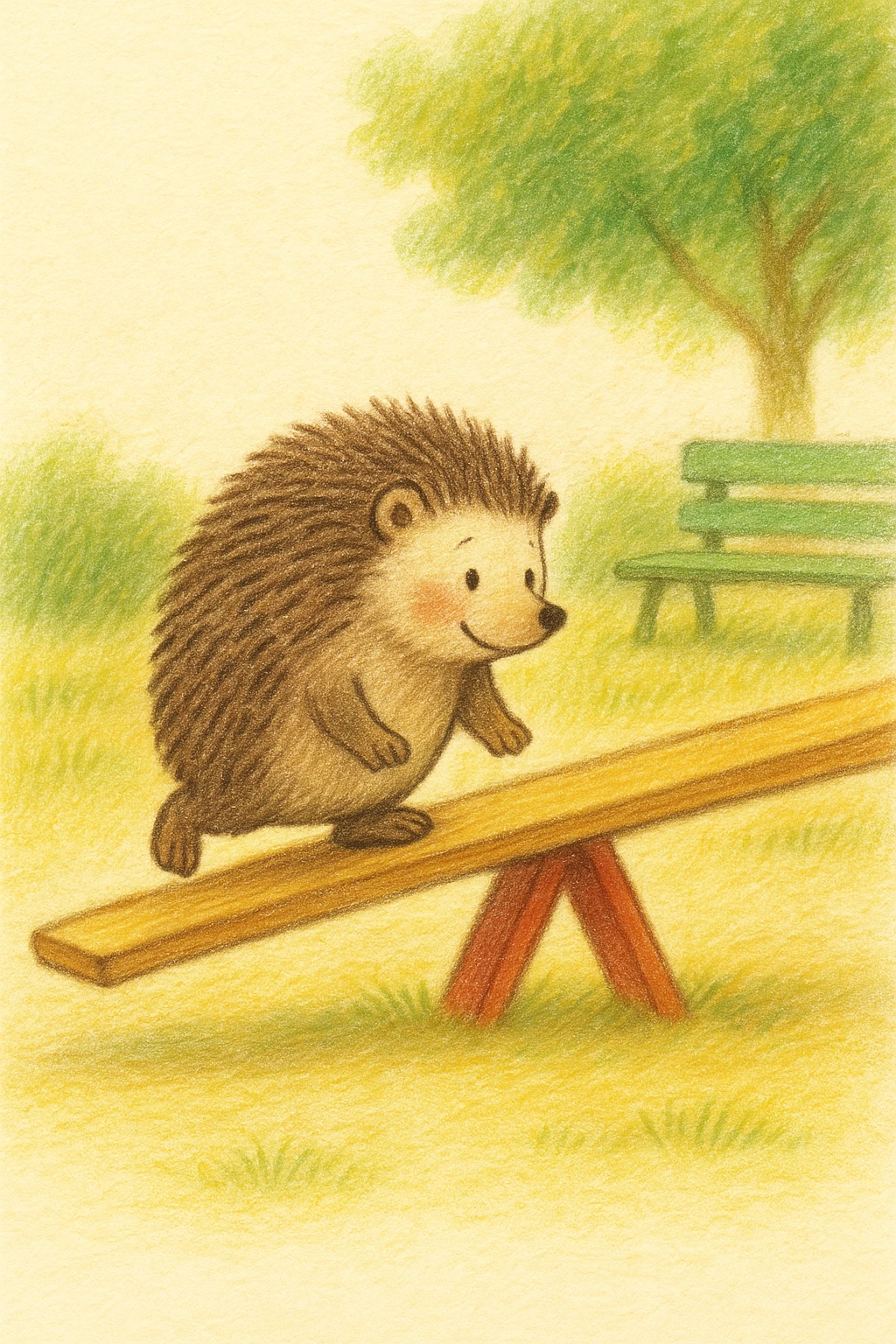 의자에 앉아 시소를 바라보는 고슴도치가 있었어요.