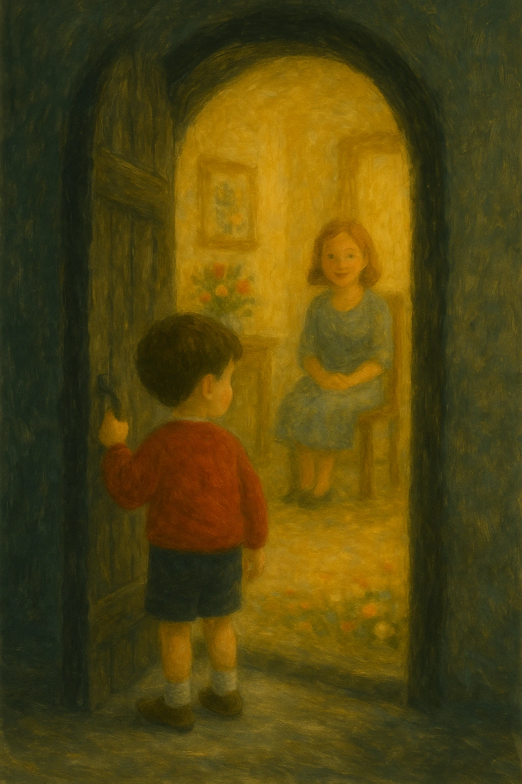 문은 크고 묵직해서 꼭 거인이 사는 집 같았어요.