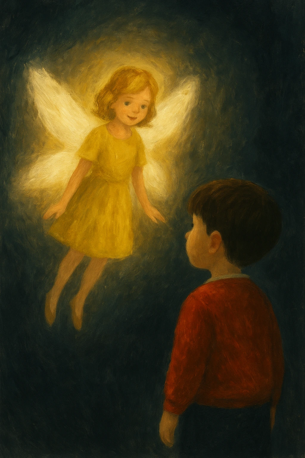 반투명한 날개를 가진 작은 요정이 떠 있었어요.