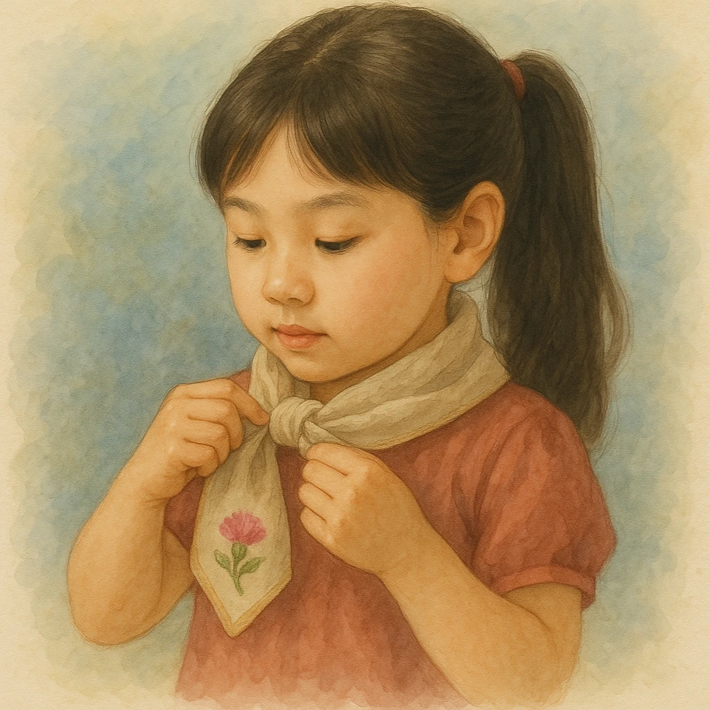 그 모습을 보시고 시어머님은 웃으며 서랍을 조용히 여셨다. 그리고 손수건을 꺼내 아이 목에 정성스레 묶어주셨다.