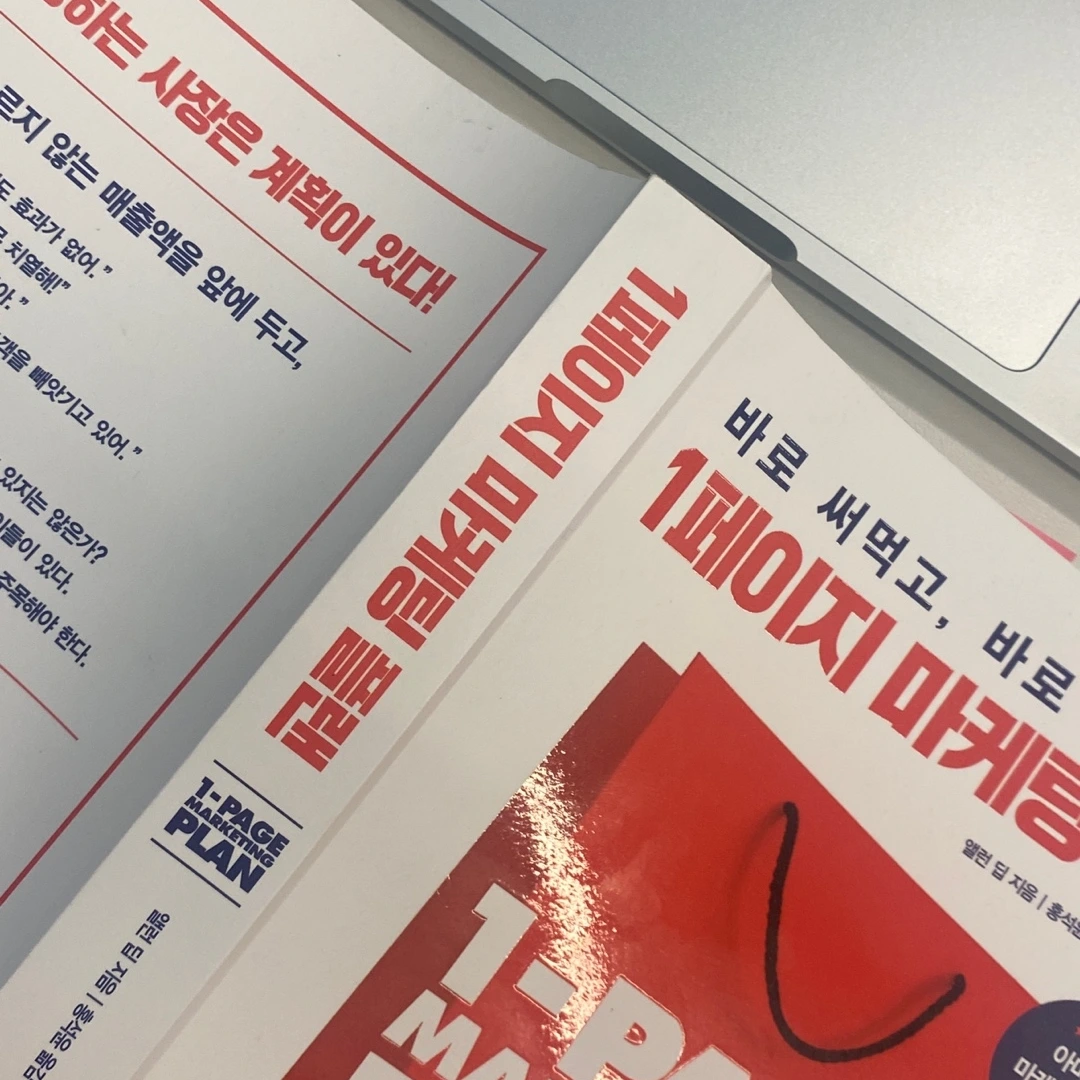 기대보다 가파르게 오르지 않는 매출과 신규 가입자 수를 보며 속절없이 푸념만 늘어놓는 마케터가 되고 싶지 않았습니다. 같은 방법으로는 같은 결과만 나온다,는 누군가의 지혜를 빌려 나에게는 낯선 새로운 관점이 필요하다고 느낄 즈음 책 ≪1페이지 마케팅 플랜≫을 만났어요.