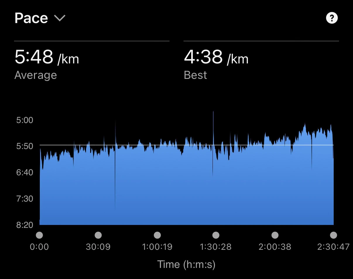 혼자 뛰는 롱런의 장점은 집중해서 쉬지 않고 비교적 빠르게 끝낼 수 있다는 것. 중간에 젤 하나도 뛰면서 먹어주고, 페이스를 조금씩 높혀가면서 마무리할 수 있었다.