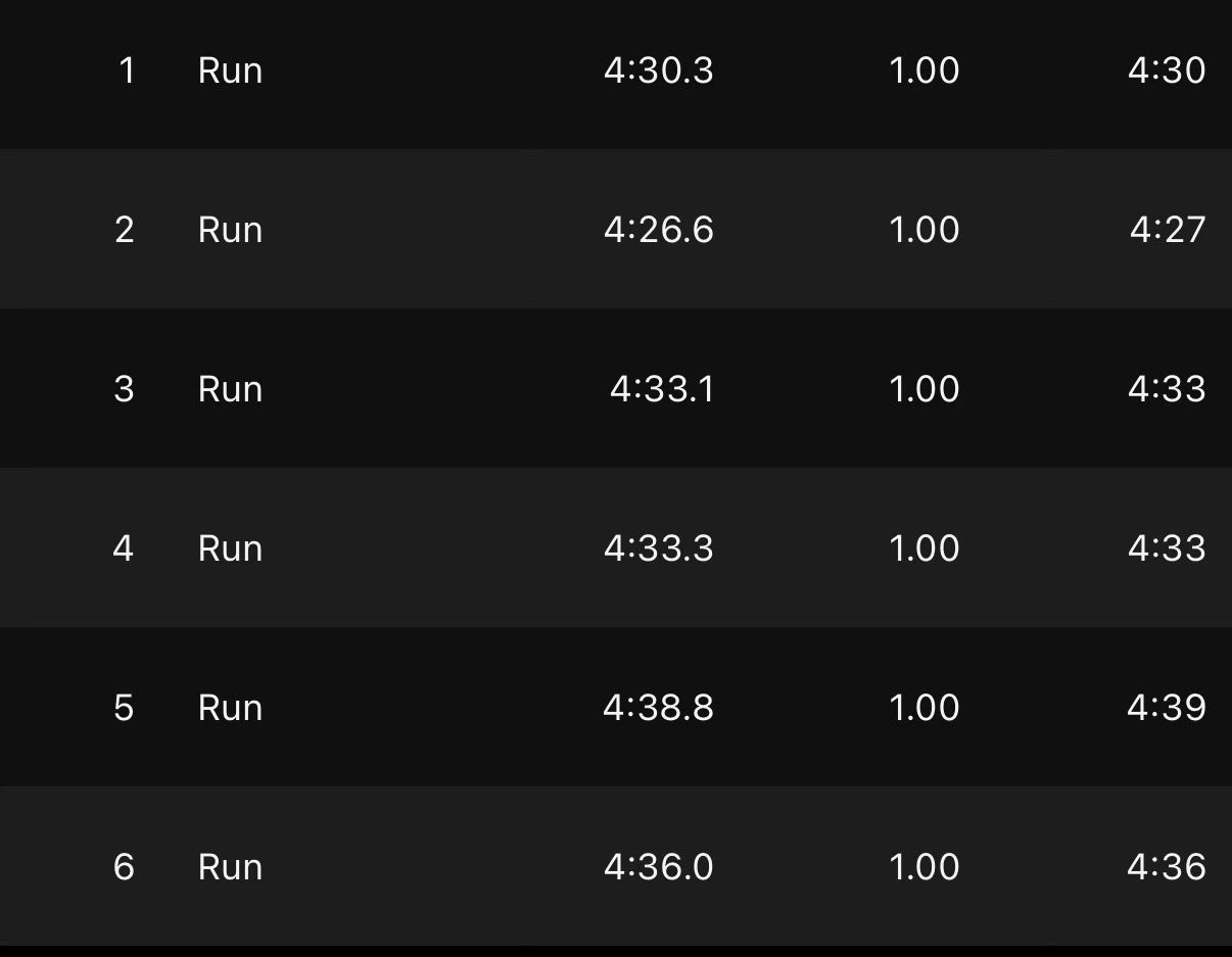 인터벌과 장거리 모두 발전은 느껴진다. 이맛이 운동하지.. 다음 한주도 화이팅.