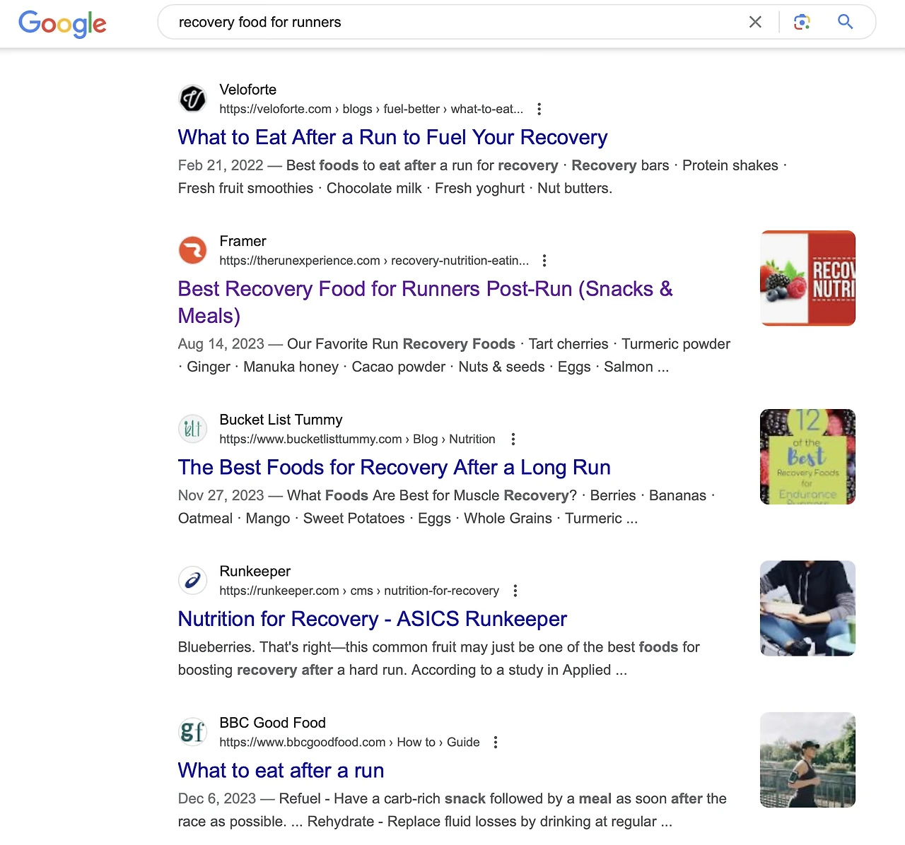 Recovery food for runners/러너를 위한 회복 음식. 이런식으로만 검색을 하면 러닝 매거진에 발행되었던 기사를 포함해 제목만 봐도 당장 클릭하고 싶은 글들이 아주 많이 검색된다.