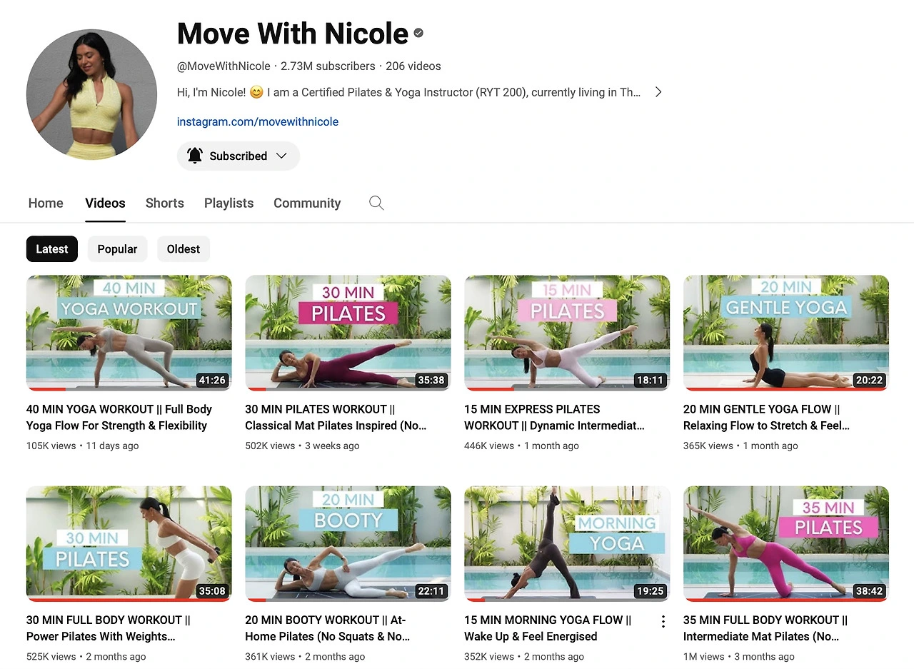 이런식으로 몇개 채널의 영상들에 익숙해지니 내가 선호하는 스타일이 생겨났다. 정적인 요가보다는 매트 필라테스가 나에게는 잘 맞았다. 가르쳐주시는 분 역시 텐션이 높고 신나는 분들 보다는 잔잔하게 설명해주는 스타일이 더 집중되고 좋아졌다. 나의 '최애' 유트브 채널 "move with nicole"을 찾은 후로 이 채널의 영상을 보며 지금도 3년째 연습하고 있는 중이다. 5-6 개월 후부터는 매트필라테스를 아침에 일어나자마자 첫번째 스케쥴로 실행하기 시작했다. 남편도 합류했다. 아침부터 땀나고 허기지는게 초반에는 유쾌하지 않았지만 발전하는 체력과 점점 단단하고 납작해지는 배를보면서 보람을 느끼기 시작했다. 누워서 한번도 제대로 들수 없었던 두 다리도 쭉 펴고 들어 올릴 수 있게 되었다.