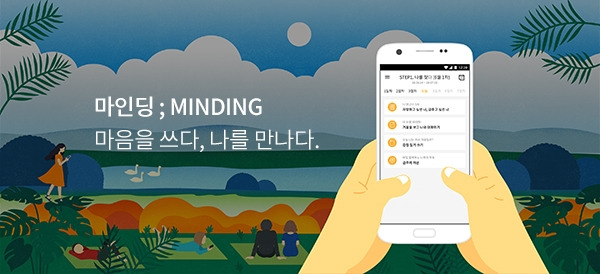 (주)마인딩은 모든 사람들이 내 마음을 가꾸는 것이 쉽고, 당연해지는 사회를 꿈꾸는 심리 스타트업입니다. 이에 대한 방법 중 하나로 현재 웹과 앱으로 이용 가능한 국내 최초 온라인 마음 관리 프로그램 마인딩을 서비스하고 있어요. :) 몸을 챙기기 위해 헬스장을 가듯, 마음을 챙기기 위해 마인딩을 하고 마인딩을 하는 크루 모두가 각자 나답게 행복해지기를 바랍니다.