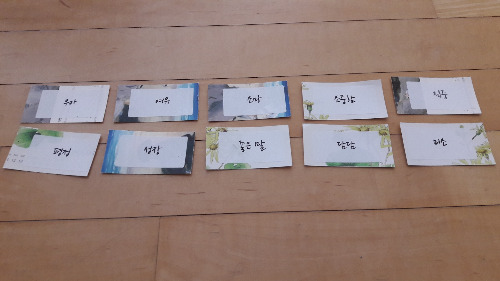 아침에 태양경배자세를 하던 그때는 나의 슬픔도 많아 잠을 잘 이루지 못했다. 2-3시간도 못 자고 새벽에 뒤척이다 결국 일어나 멍하게 앉아 있었다. 잠을 못 자고, 가만히 있으면 눈물이 흘렀다. 힘들었다. 나한테 잘해주고 싶었다. 맛있는 걸 먹게 해 주고, 좋은 것을 듣고 보게 해주고 싶었다. 아침의 밝은 에너지를 담아 하루를 시작하게 해주고 싶었다. 좋아하는 단어를 적은 작은 종이카드를 만들어두고 태양경배자세가 1번 끝날 때마다 바닥에 늘어놓고 끝나면 사진을 찍어두곤 했다. 내가 널 아끼고 있으니 힘을 내라고, 너무 많이 생각하지 말고 지금 이 시간을 지나가 보자고, 욕하고 울어도 되니까 너를 탓하지 말라고 위로하는 나의 <마음카드>였다.