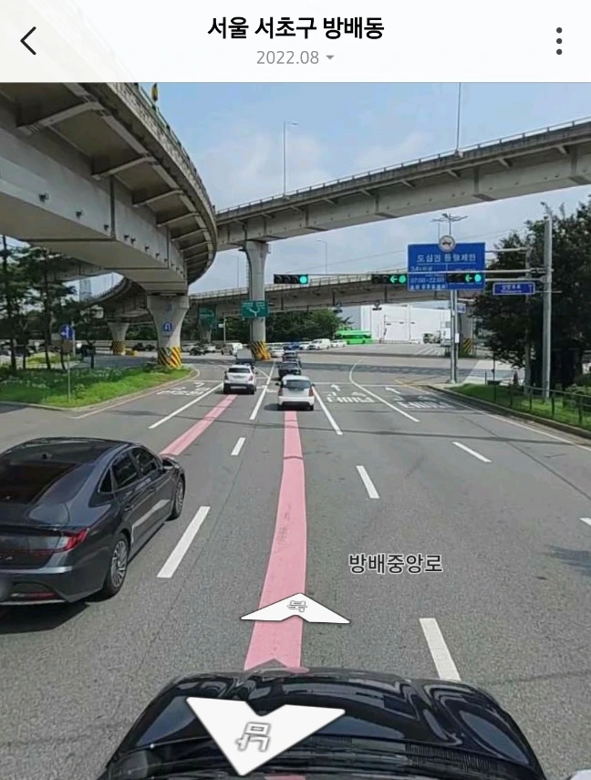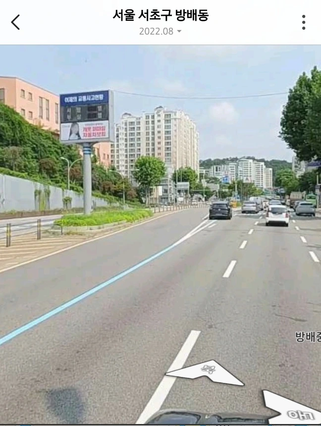위 사진과 같이 전광판이 설치되어 있었습니다. 로드뷰 사진으로는 대낮이라 차가 별로 없지만 이 길은 사당역과 동작대교 사이로 퇴근 시간에 매우 혼잡한 곳입니다. 또, 전광판을 지나서 조금만 가면 차량들이 많이 모이는 복잡한 이수교차로가 있다는 점에서 조금 우려스러워 보입니다.
