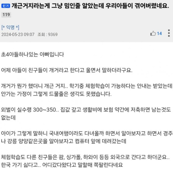내가 살고 있는 사회가 초등학생까지 서로 비교하고, 혐오하고, 차별하는 망한 곳이라고 믿게 되는 게 무슨 도움이 되는지 의문입니다.