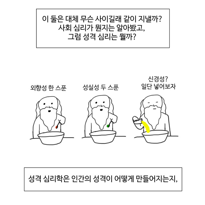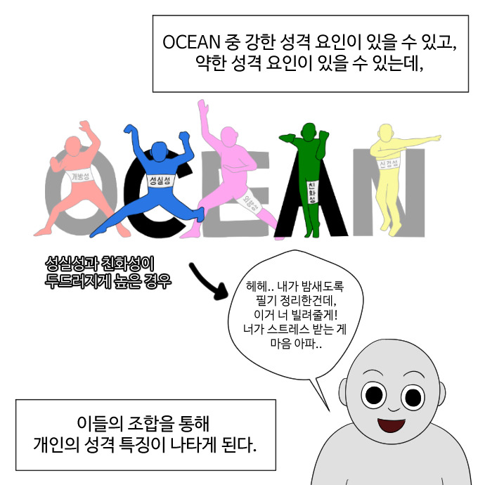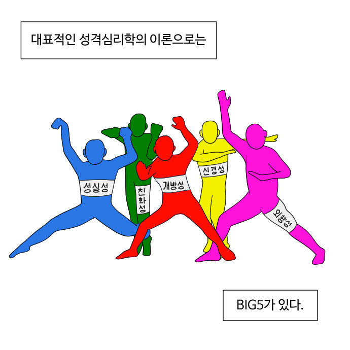 이번 화에서는 성격 심리학에 대한 개괄적인 내용과 사람들의 성격을 설명하는 데 가장 널리 사용되는 BIG5이론에 대해 알아보고, 왜 사회 심리학과 성격 심리학이 긴밀한 관계를 갖고 있는지 살펴보았습니다.