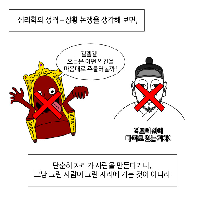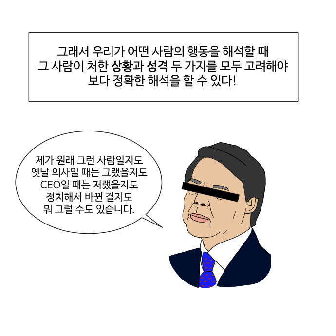 우리가 어떤 사건이나 사람들의 행동을 해석하고 판단하는 데 있어서, 편향된 시각이 아닌, 다양하고 복합적인 시각을 가져야 한다는 교훈을 우리는 상황-성격 논쟁에서 얻을 수 있습니다.