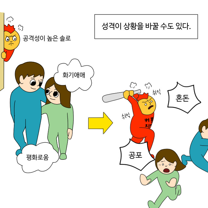 상황과 성격의 상호작용은 우리의 일상생활에도 생각할만한 거리를 던져줍니다. 모든 것은 어느 한 가지 요인만으로는 설명할 수 없고, 다양한 요인들의 영향으로 설명될 수 있으며, 나아가 그 요인들이 복합적으로 상호작용한 결과라고 볼 수 있습니다.