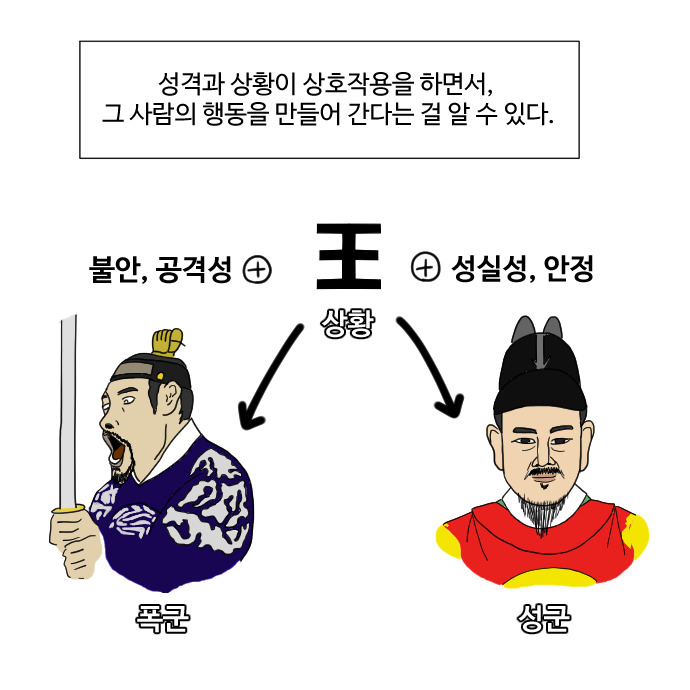 여러분은 우리의 행동에 상황이 더 큰 영향을 미칠지, 성격이 더 큰 영향을 미칠지 판단할 수 있으신가요? 아마도 다양한 의견이 나올 것이고, 어떤 것이 더 큰 영향을 미칠 것이라고 단언하기 어려울 것입니다.