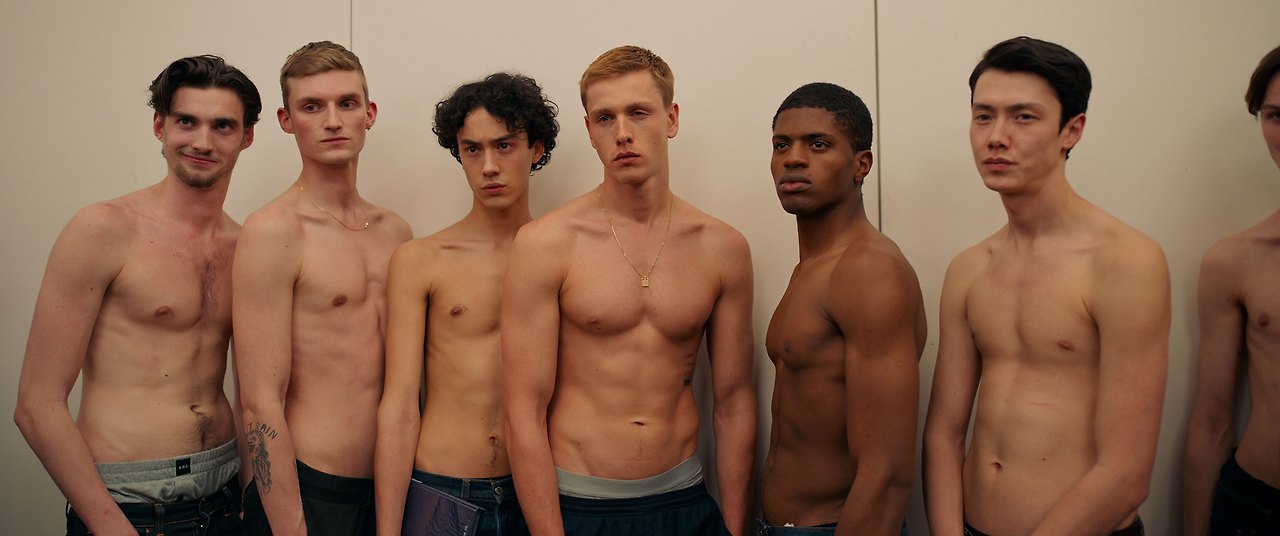 오디션을 보기 위에 몰려든 남자 모델들은 모두 상반신을 노출하고 있다. 인터뷰하는 장면과 함께 패션 브랜드에 따른 표정이 상당히 인상적이다. 두 브랜드의 모습을 타겟층에 따라 다르게 표현하는 모델들의 표정과 인터뷰의 내용은 여러 가지 문제로 인해 곤란을 겪고 있는 남성 모델들의 사정이 언급된다. 어떤 것으로도 채워 넣을 수 없는 슬픔의 삼각형으로 인해 합격하지 못한다. 자연스러움을 원하면서도 인위적인 젊음을 얻으려는 모순은 뒤이은 장면에서 지속된다. 어디에도 닿지 않는 패션 행사의 휘향 찬란한 메시지와 황당한 상황이 일어나지만 마치 아무 일도 없었다는 듯이 본격적으로 패션쇼가 시작된다.
