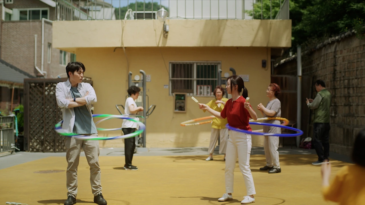문득 바라본 것에서 떠오르는 과거는 새로운 시작을 알리고 있다. 흘러가는 대로 마주치는 인연은 운명 같은 재회를 한다. 과거가 현재를 덮어도 변하지 않는 장소에서 마주한 서로를 바라보며 웃음꽃을 피우고 안부를 묻는다. 훌라후프처럼 돌아가는 흐름이 느려도 혹은 빨라도 ‘늘’ 같은 모습을 하고 있어서 숨을 몰아쉴 수 있게 되는 것이다. 따스한 햇살과 살랑이는 바람 속 변하지 않은 한 사람, 그리고 다른 한 사람의 모습을 비춘다. 늘 변함없는 그 사람의 모습이 싫기도 하지만 동시에 좋기도 해서 빨간색의 연이는 파란색의 강이에게 다가온다. 멀어진 사이가 갑작스레 가까워져도 변하지 않는 그 마음을 다시 줍는다.