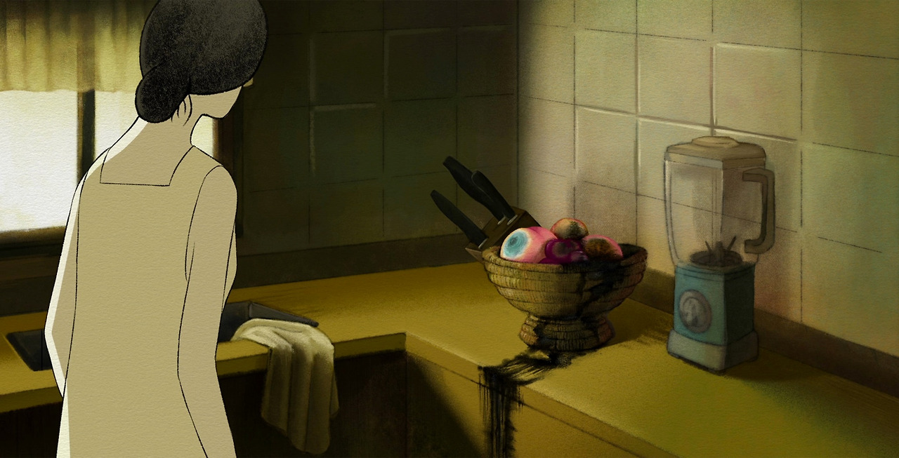 J의 상황이나 과거를 제대로 알 수는 없었지만 분명한 건 배우자의 존재는 J의 모든 것이나 다름없었다는 것은 분명히 알 수 있었다. 그래서인지 곰팡이에 영혼이 스며들어 있는 듯 보였다. 자리를 옮겨가며 검은색 자국을 조금씩 넓혀가는 모습을 지켜보며 J는 무슨 생각을 했던 걸까. 곰팡이가 핀 음식을 욕조로 옮겨 담으며 무언가를 만들고 그 속의 자신을 담근다. 그렇게 해서라도 비로소 하나가 되는 그 모습은 진정으로 바라던 것일까. 진짜가 아닌 것에 빠져들게 하는 상실의 마무리가 참으로 무섭게 여겨졌다. 굉장히 강렬한 인상을 주었던 영화였다.