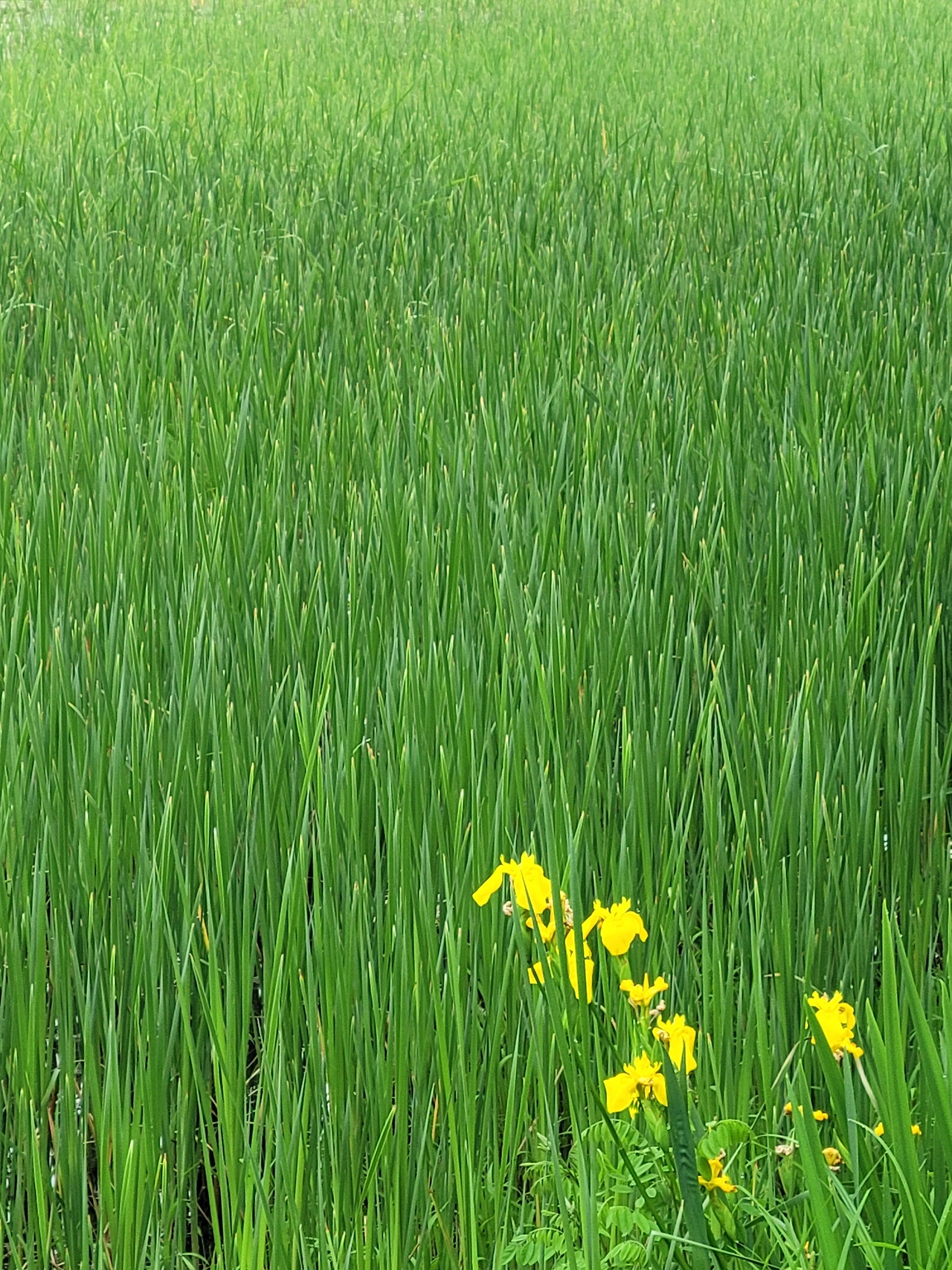 찔레꽃 다음으로 많이 들어오는 건 꽃창포입니다. 노란 꽃이 호숫가를 물들입니다. 무리 지어 핀 게 확연히 전보다 많습니다. 쑥쑥 자라는 갈대와 궁합이 잘 맞습니다. 새벽에 가면 혼자 보기 아까운 비경을 연출합니다.