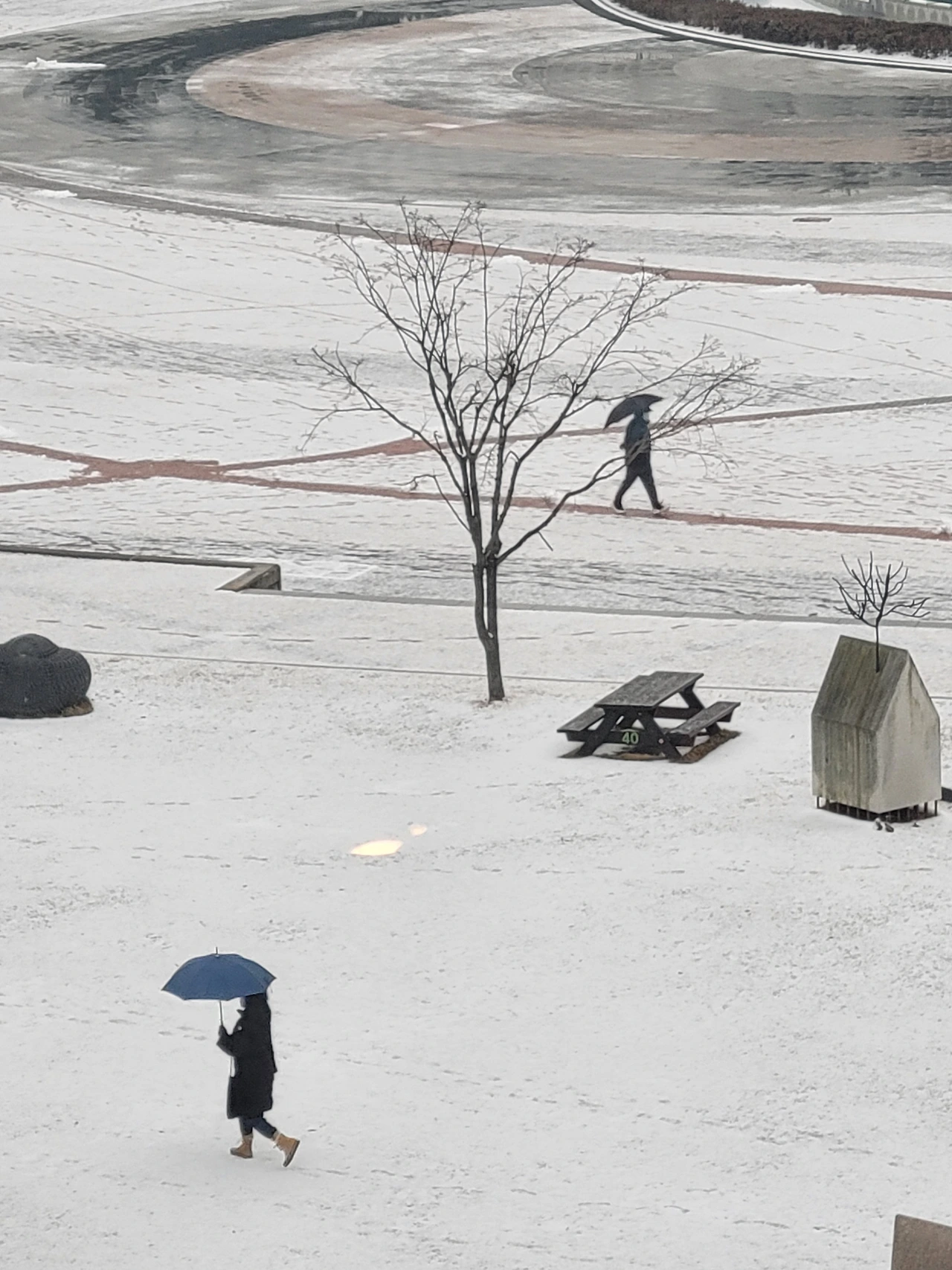 눈이 내리면 달려가는 곳이 있습니다. 노래하는 분수대가 내려다보이는 카페입니다. 3층 카페에서 내려다보는 눈 풍경이 자못 흥미롭습니다. 눈과 사람, 사람들이 그려낸 궤적이 아릅답습니다. 가까운 곳에서 원하는 풍경을 만나는 기쁨은 작은 행복입니다.