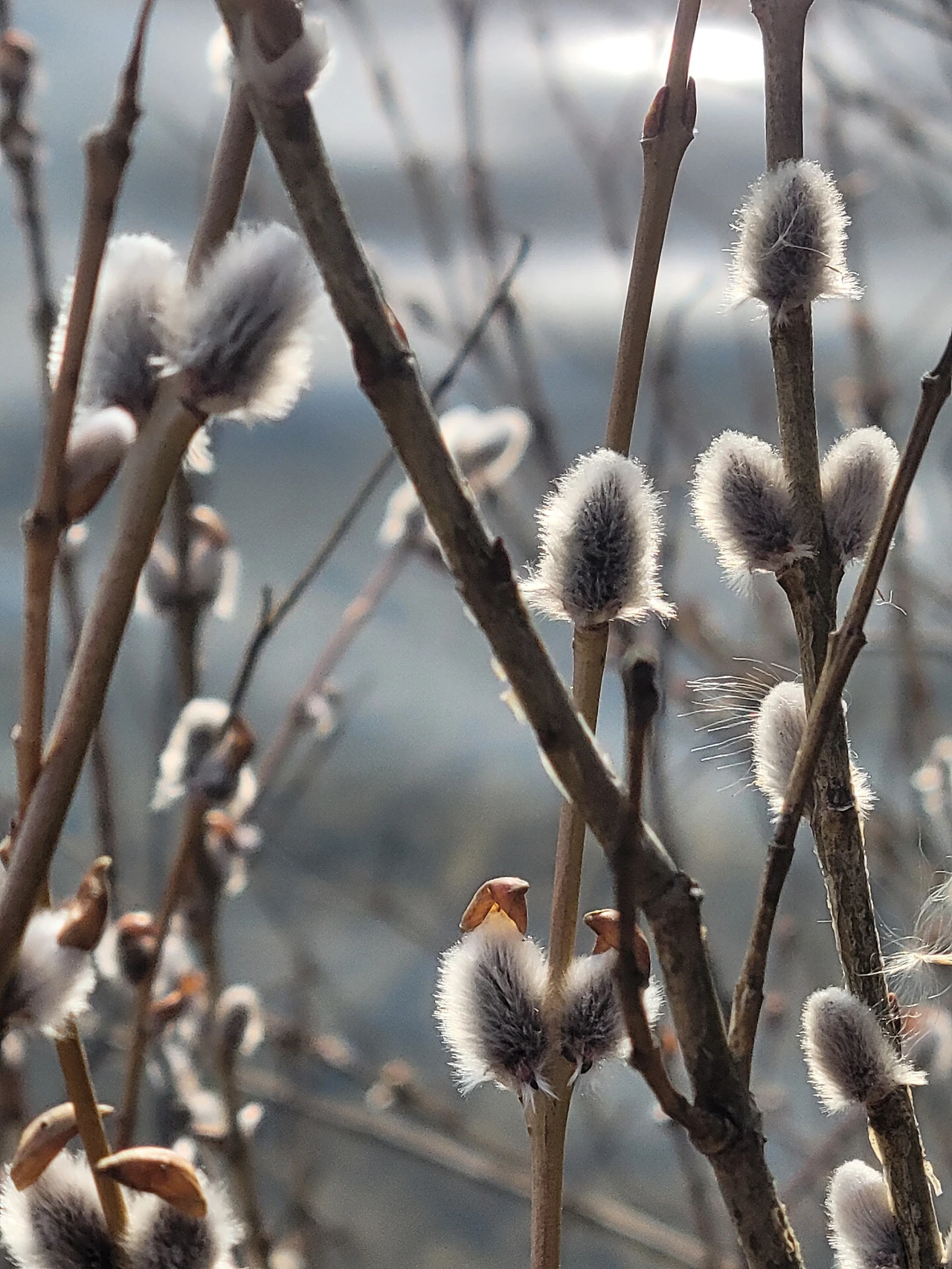 산책 중에 물가에 핀 키버들을 만났습니다.