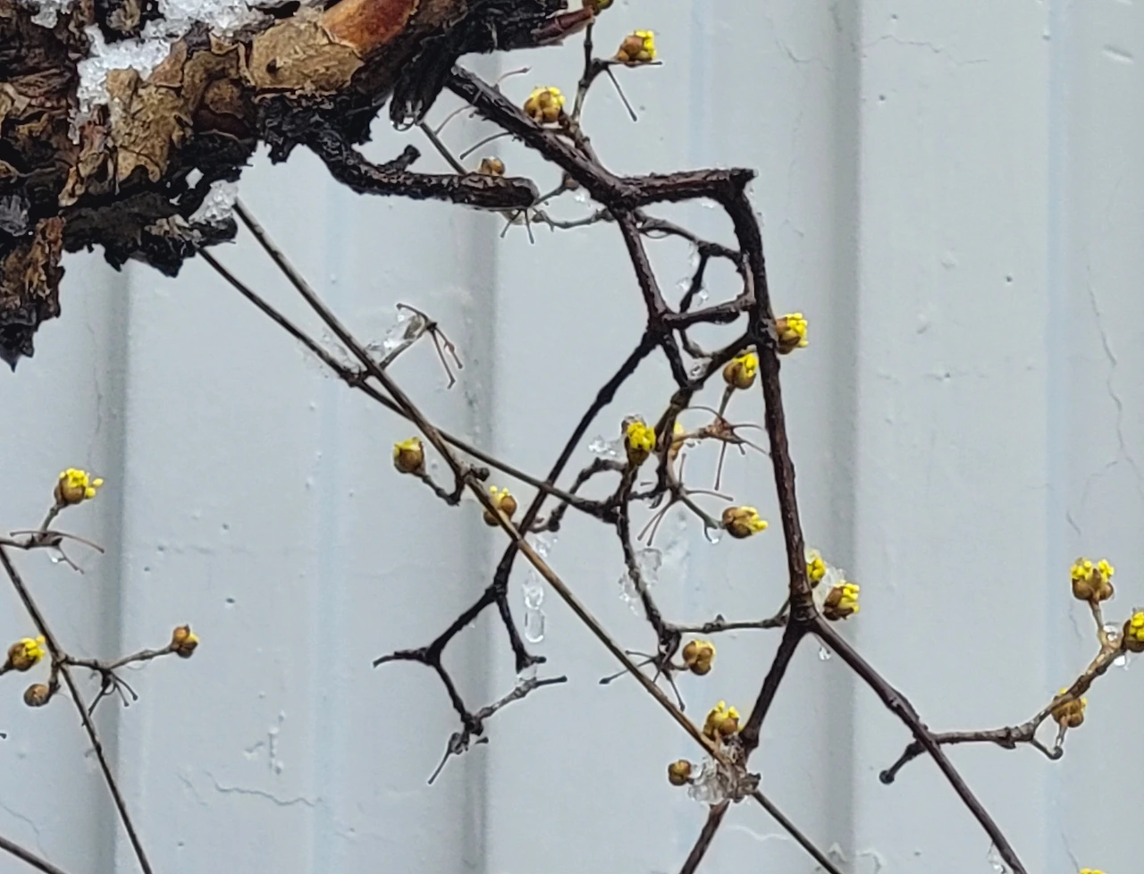 겨울의 끝자락과 봄의 시작이 한 프레임에 담겼습니다. 올해 마지막 눈이 노란 산수유 꽃봉오리에 조용히 내려앉았습니다. 눈과 얼음은 곧 녹아 사라질 테지만, 그 짧은 만남이 아름다운 모습으로 남았습니다.