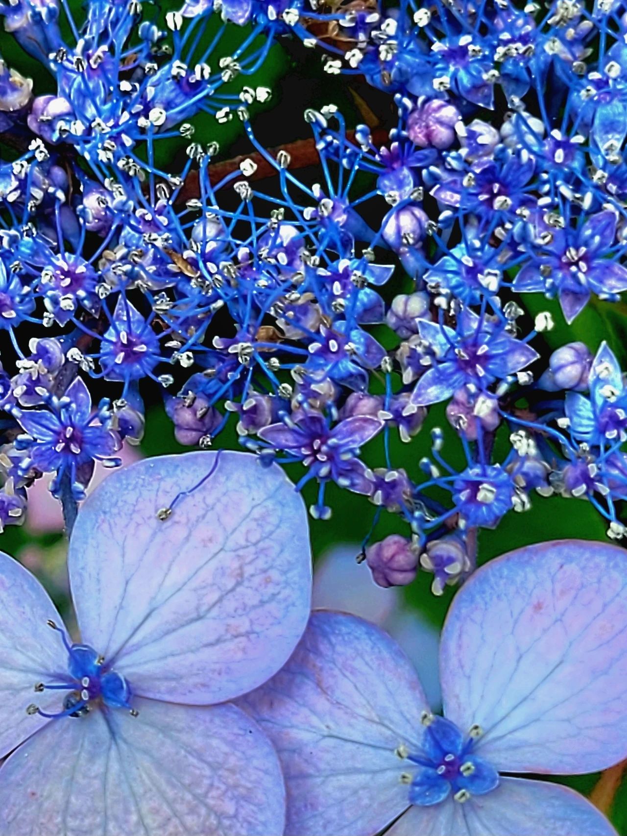 오늘 아침 산책 길에서 만난 산수국입니다. 가짜꽃과 진짜꽃이 공존합니다. 산수국에겐 다 있을 만한, 있어야 하는 필요한 일일 테지요.