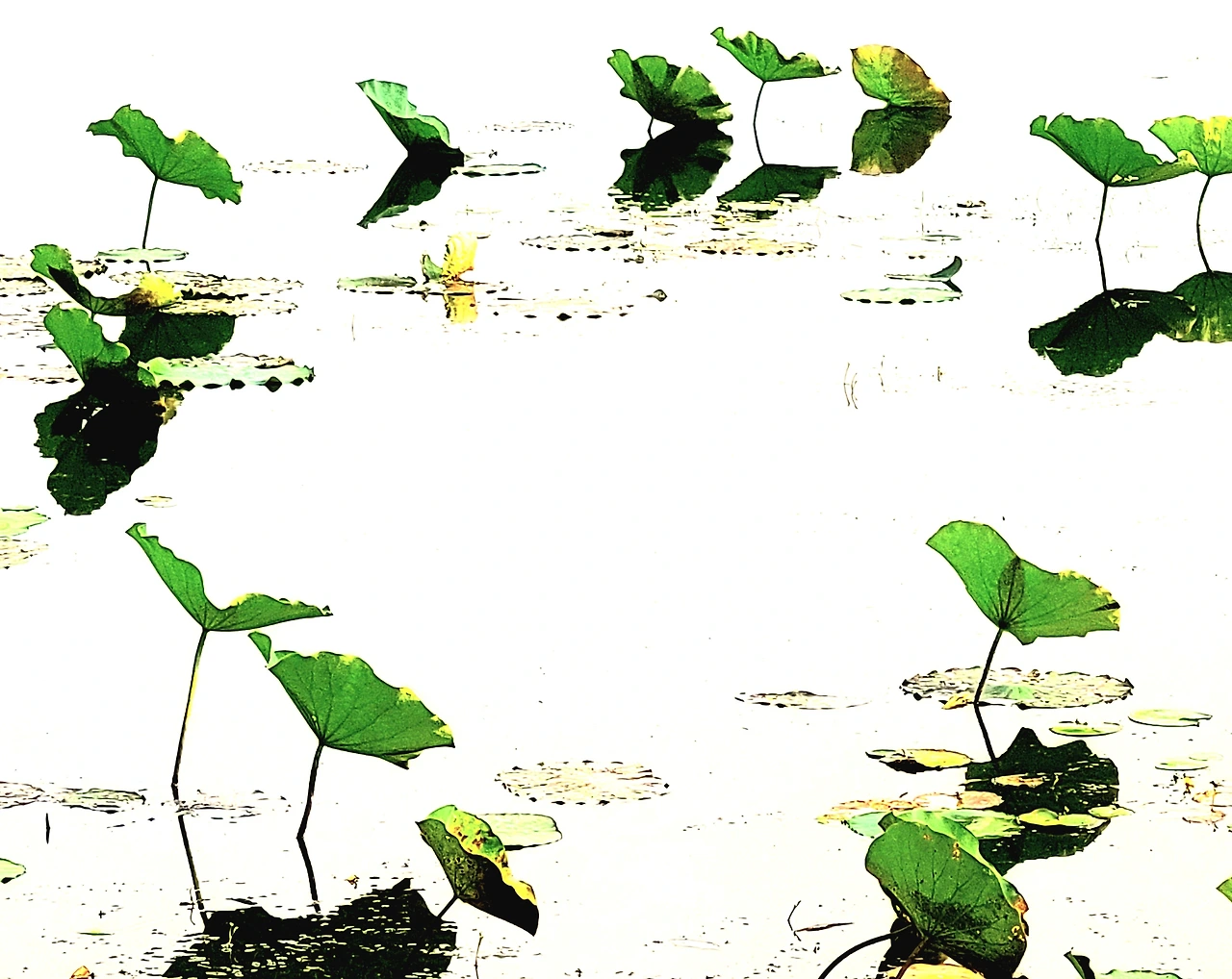 호수 위의 연잎이 새의 모습을 닮았습니다.
