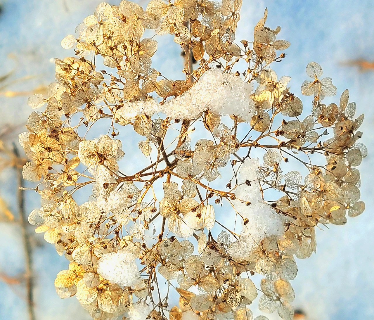 눈이 내리면 살아 있음과 시듦의 경계에서 꽃이 피어납니다. 겨