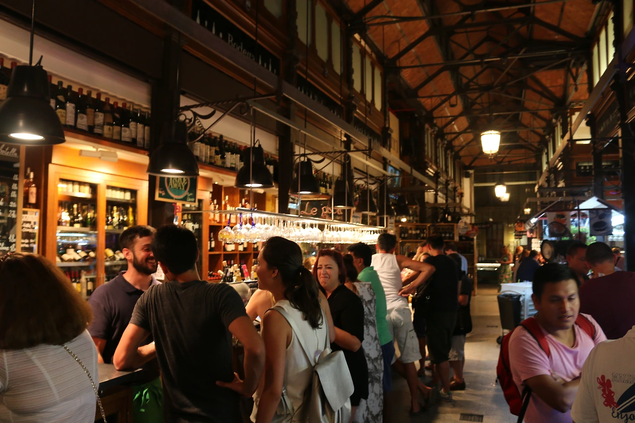 다양한 것들이 눈길을 잡아 끈다. 각종 야채, 해산물, 육류 등의 식료품에서부터, 와인, 샴페인, 맥주, 위스키 등의 주류와 타파스와 같은 먹거리들. 이곳은 시장이라는 느낌보다는 푸드코트와 술집과 마트를 한데 뒤섞어 놓은 듯한 곳이다.