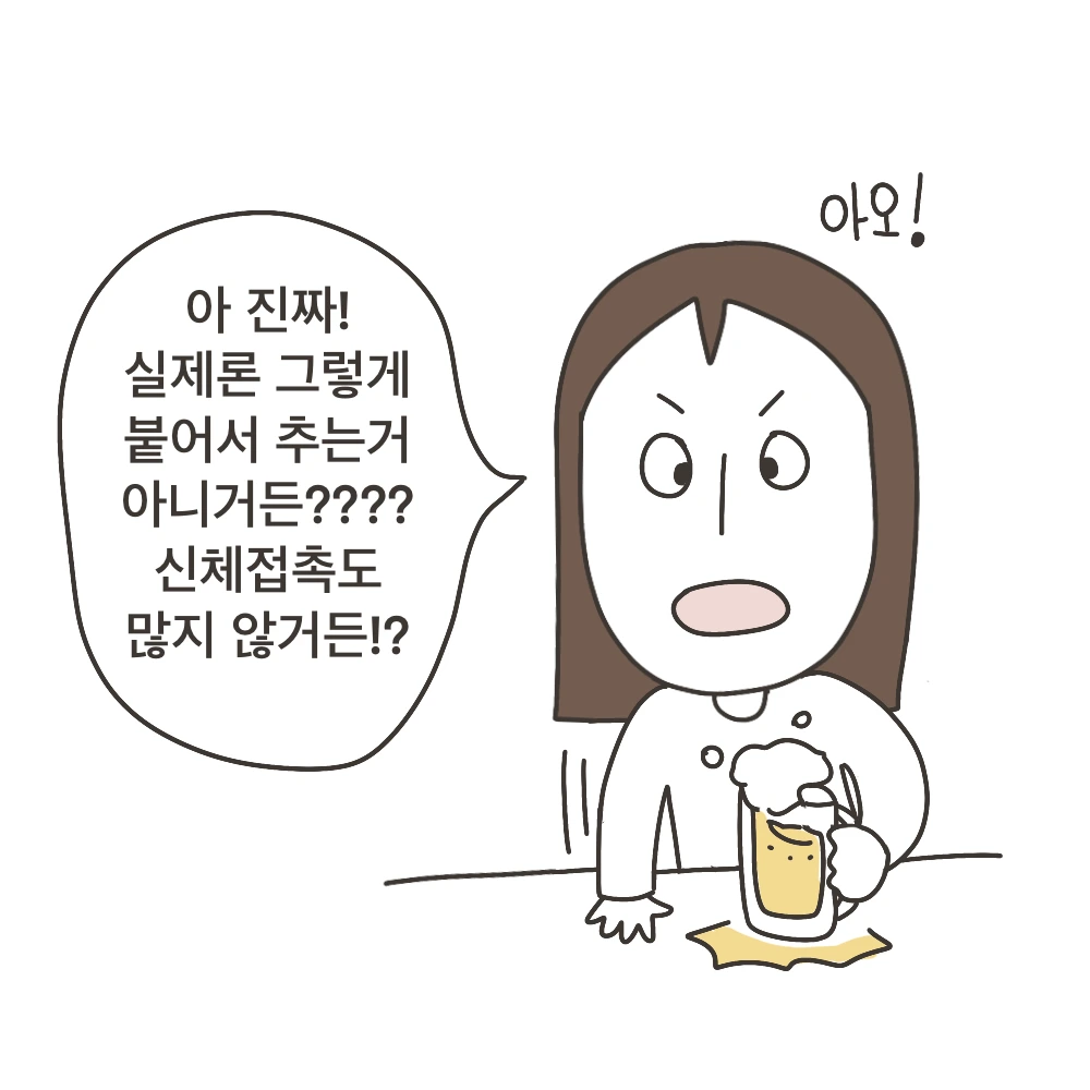 손만 잡고 서로 스텝 밟으며 턴 도는 동작도 가능하고 실제는 보기보다 몸이 많이 붙지 않는다.