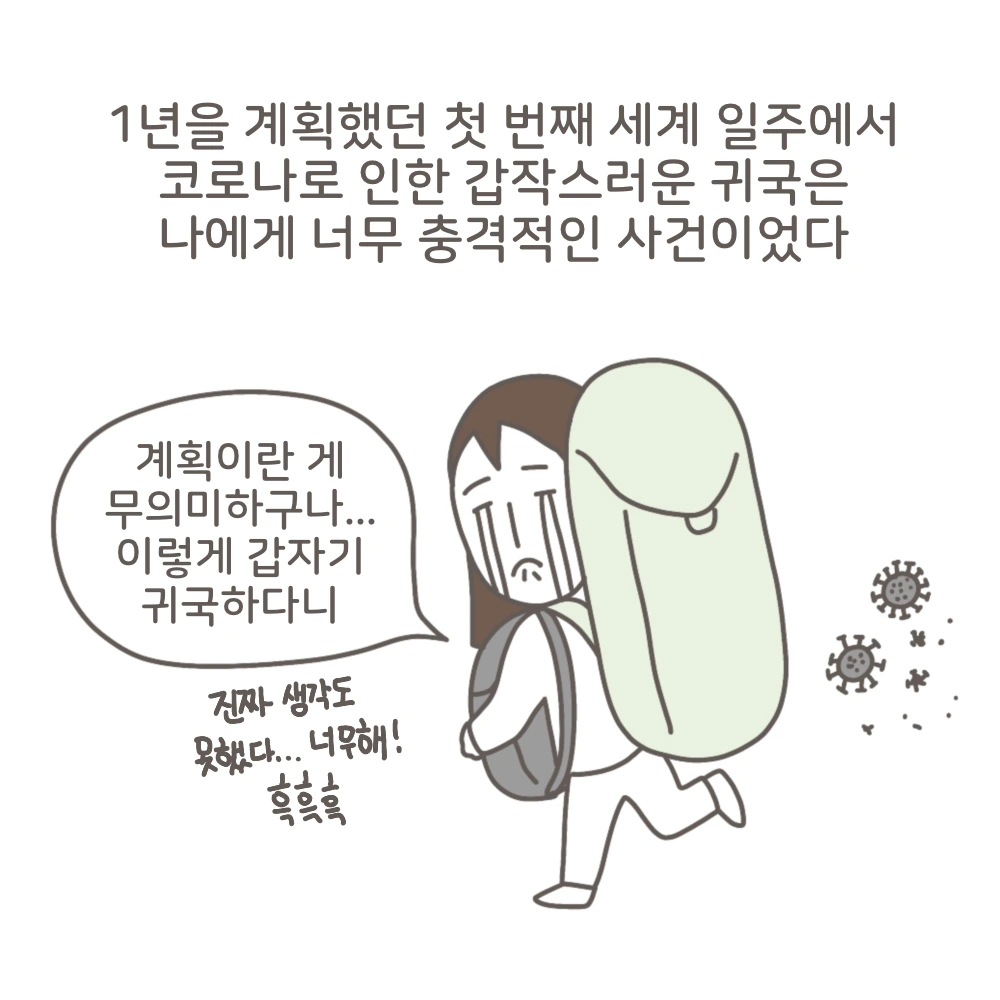 그렇게 단단히 준비했던 첫 번째 세계여행은 갑자기 아프게 끝나버렸다.