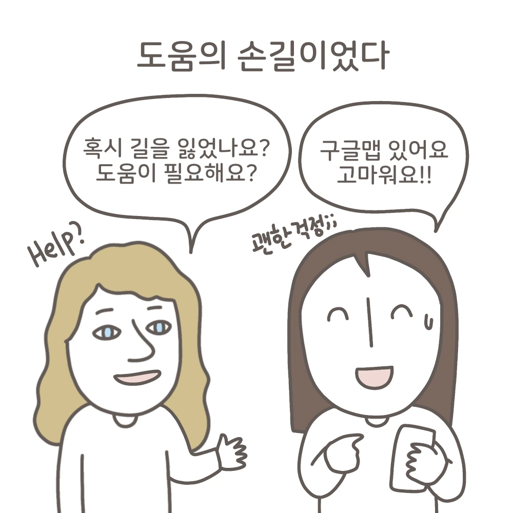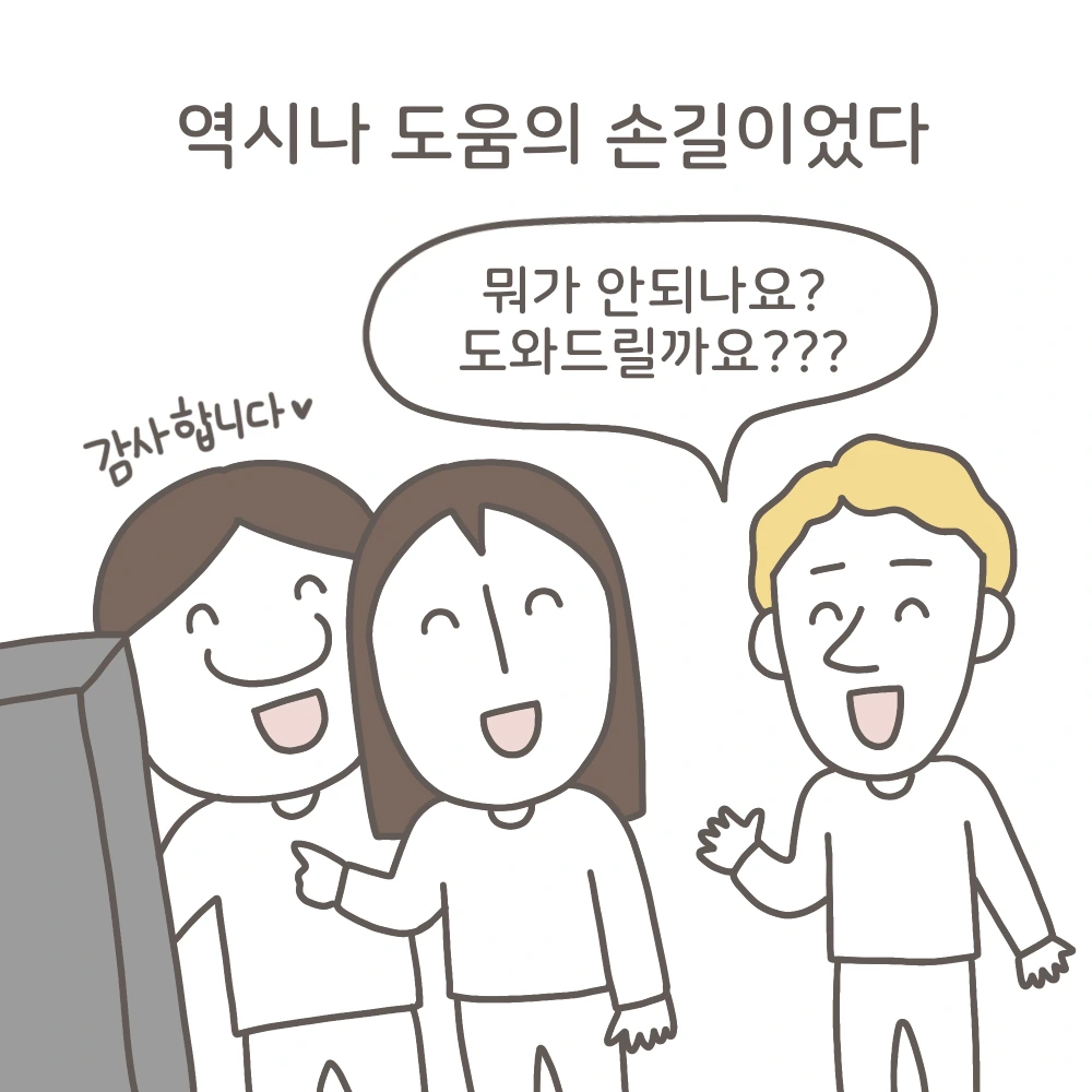 나와 눈이 마주치자 기다렸다는 듯 ‘혹시 도움이 필요한가요? 뭘 도와줄까요?‘라고 물어봤다.