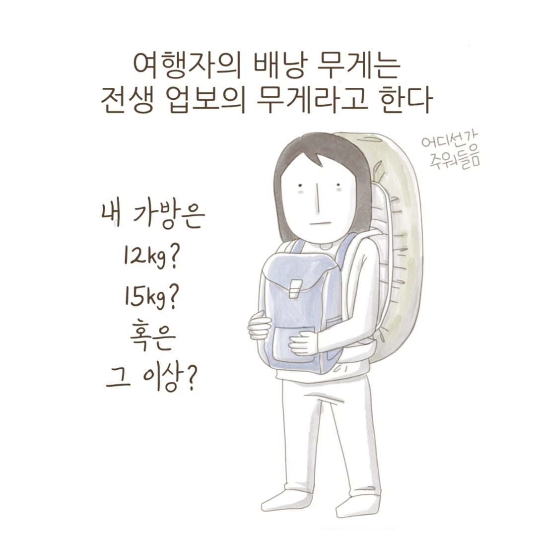 가방이 무거워질수록 인생에 꼭 필요한 것이 무엇인지생각하며 여행에서도 삶에서도 더 줄여야 하는 게 무엇인지 고민하게 된다.