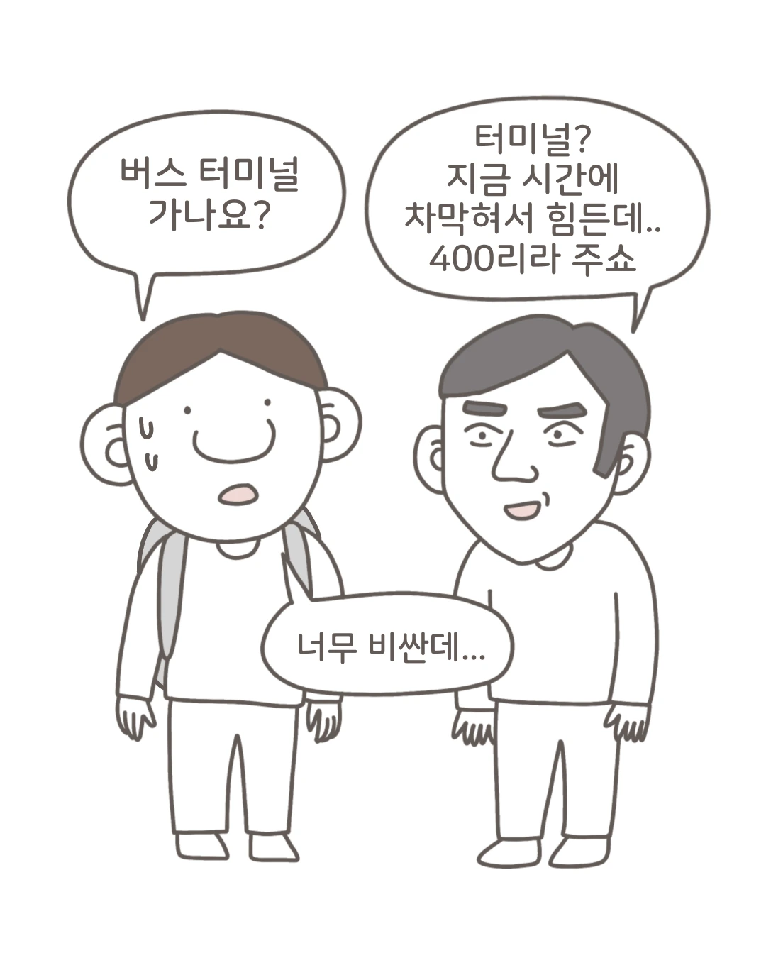 어쩔 수 없이 그들과 흥정이 시작되었으나 터미널에 가야 하는 우리 부부는 시간에 쫓겨
