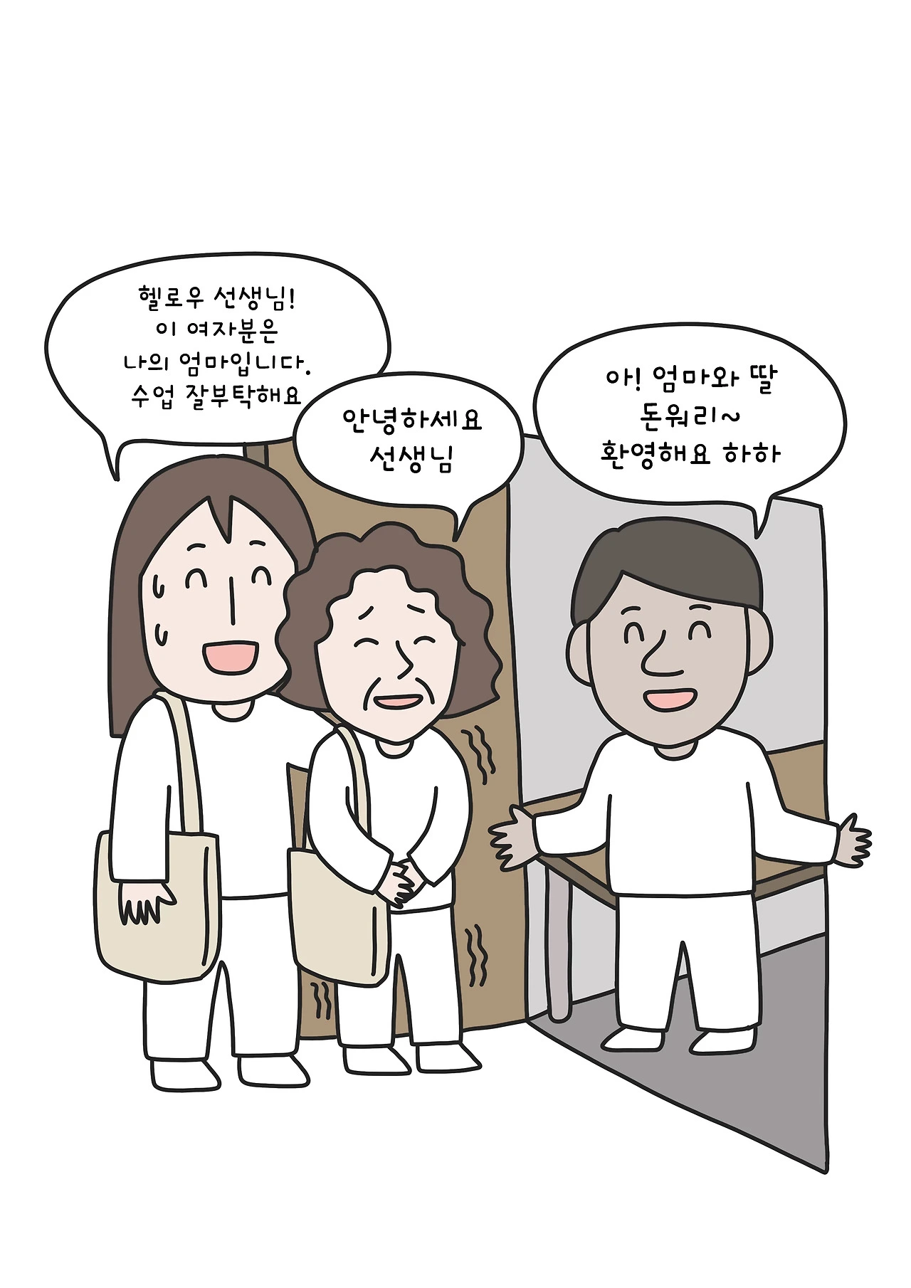 첫날 레벨 테스트에 따라 짜인 시간표를 받고 엄마의 교실을 먼저 찾았다.