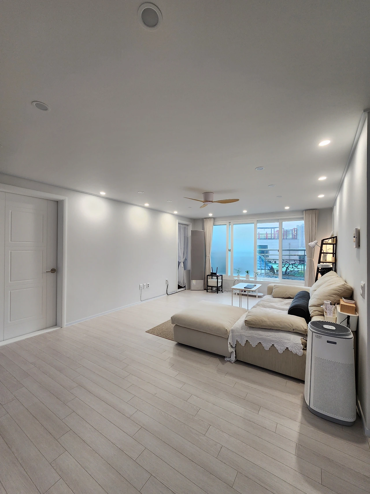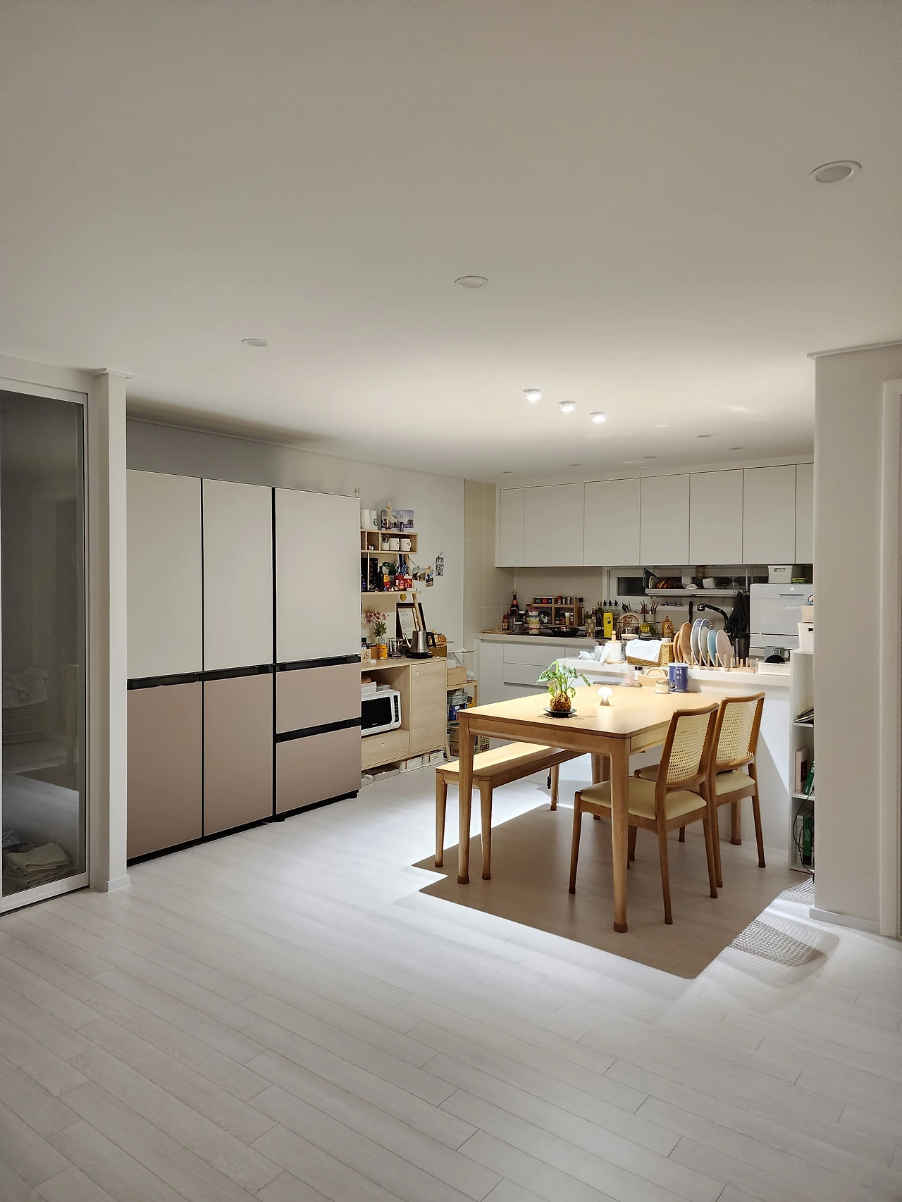 깨끗한 화이트 톤으로 전체 인테리어를 해두니 천장이 낮음에도 답답한 느낌은 커녕 40평짜리 커다란 집에 있는 기분이 든다.
