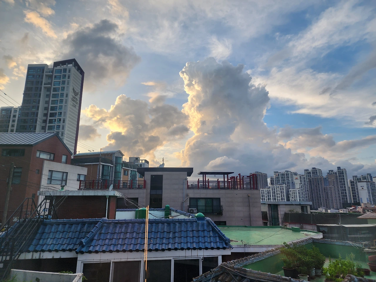 비록 서북향이라 햇살이 직접 들지는 않지만 쇼파에 누우면 거실 창 밖으로 예쁜 하늘을 바라볼 수 있다.