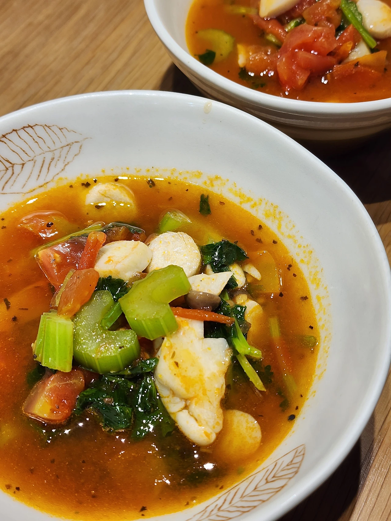 냉장고속 남은 채소로 만든 채소스프와 티라미수 케이크