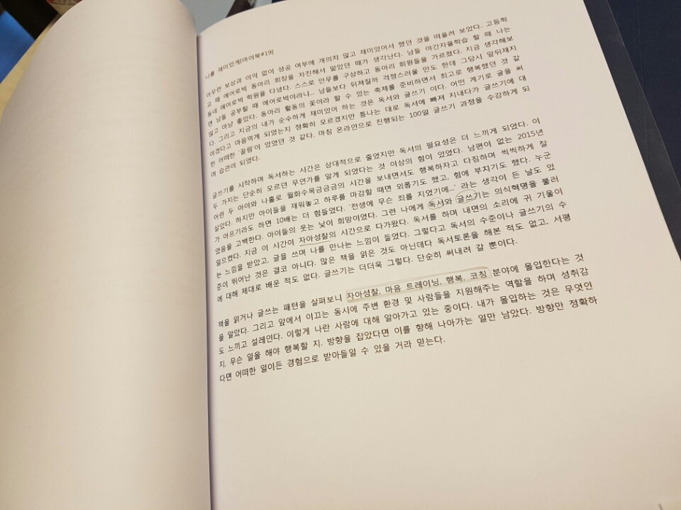마이북을 진행하며 나를 설레게 하는 것이 무엇인지, 내가 몰입할 수 있는 일이 무엇인지, 무엇을 하며 살아야 할 것인지 방향을 찾을 수 있었다. 나에게 가장 큰 영향을 주었던 것은 마이북 도중 '멘토' 가 생긴 인생 최대의 사건이다.