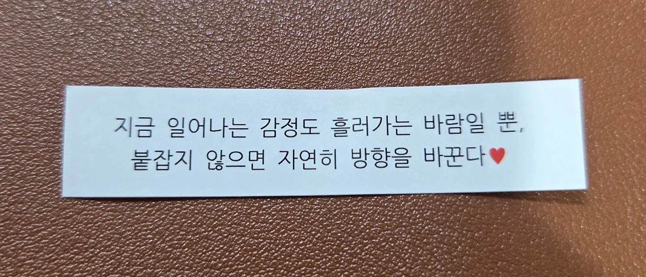 신랑이 연말이라 법당에 다녀와 받은 포춘쿠키로 신년운세 뽑듯 설레하며 가족 모두가 읽어보았다.
