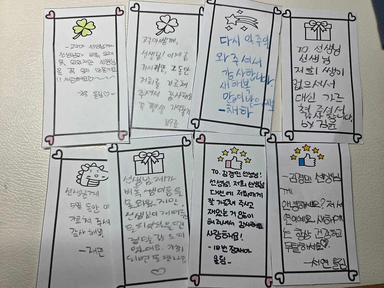 그리고 그 아이들에게 나도 롤링페이퍼를 써주었다. 거의 복붙수준 편지지만,
