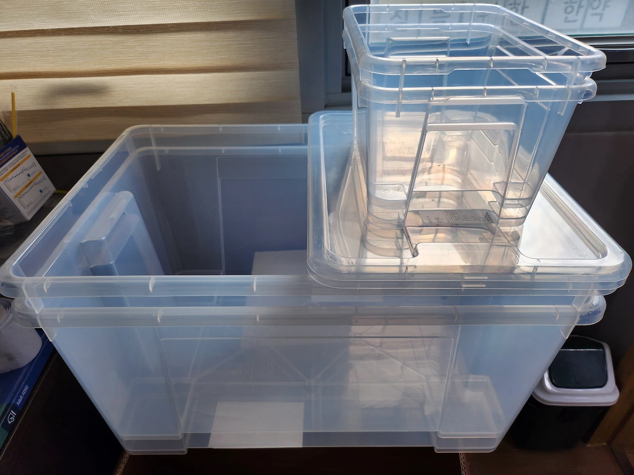 진료실 뒷공간이 새로 사들인 수납함, 스툴 등등 물건들과 잘 못 주문한 물건들로 더 채워졌습니다.