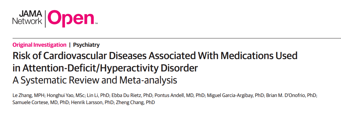 새로운 사실: ADHD치료제는 어느 연령에서도 심혈관 위험과 관련이 없다