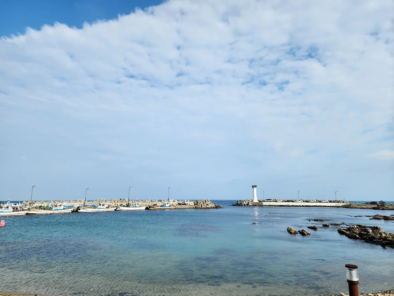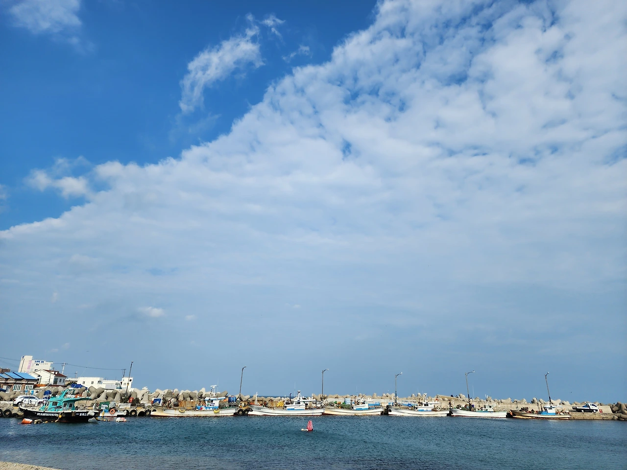 방파제 쪽으로 배들이 정박해 있었다. 32개월 첫째와 배에 대한 얘기를 나눴다. 장난감으로 뱃고동 소리를 기억하던 아이는 배를 보며 반가워했다. 하늘의 구름은 솜사탕을 펼쳐놓은 것만 같았다. 따뜻한 솜이불 같기도 해서 자꾸만 하늘을 바라보게 했다.