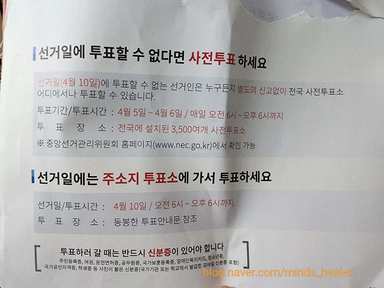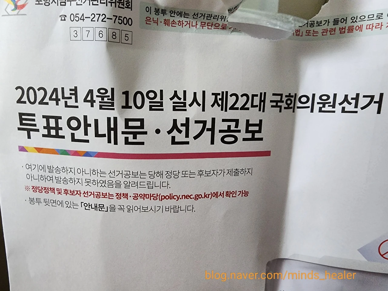 그것은 2024년 4월 10일에 실시하는 제22대 국회의원 선거 투표안내문 · 선거공보였다.