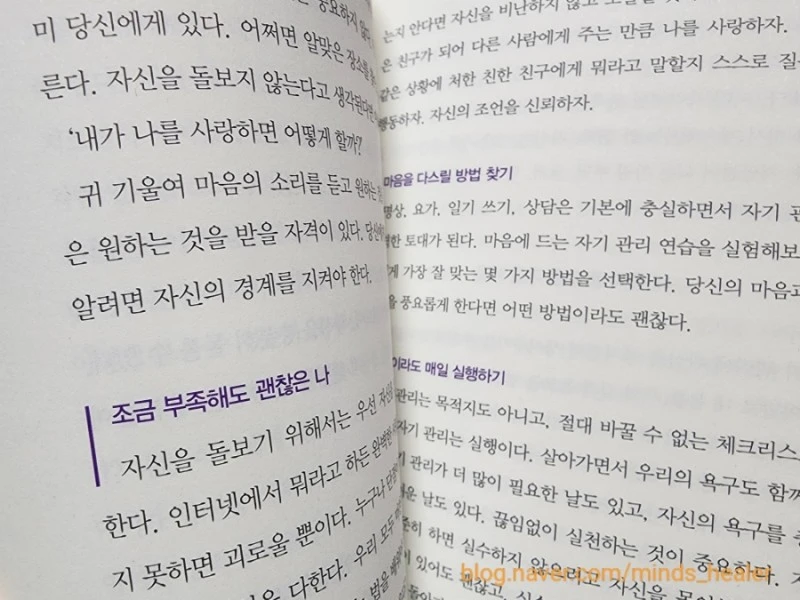 관계에 대한 얘기에서 목표에 대한 내용으로 이어지며, 지금 노력하는 나 자신만으로 충분하다고 다독이는 저자의 손길이 느껴지는 것 같아 괜스레 뭉클해졌습니다.