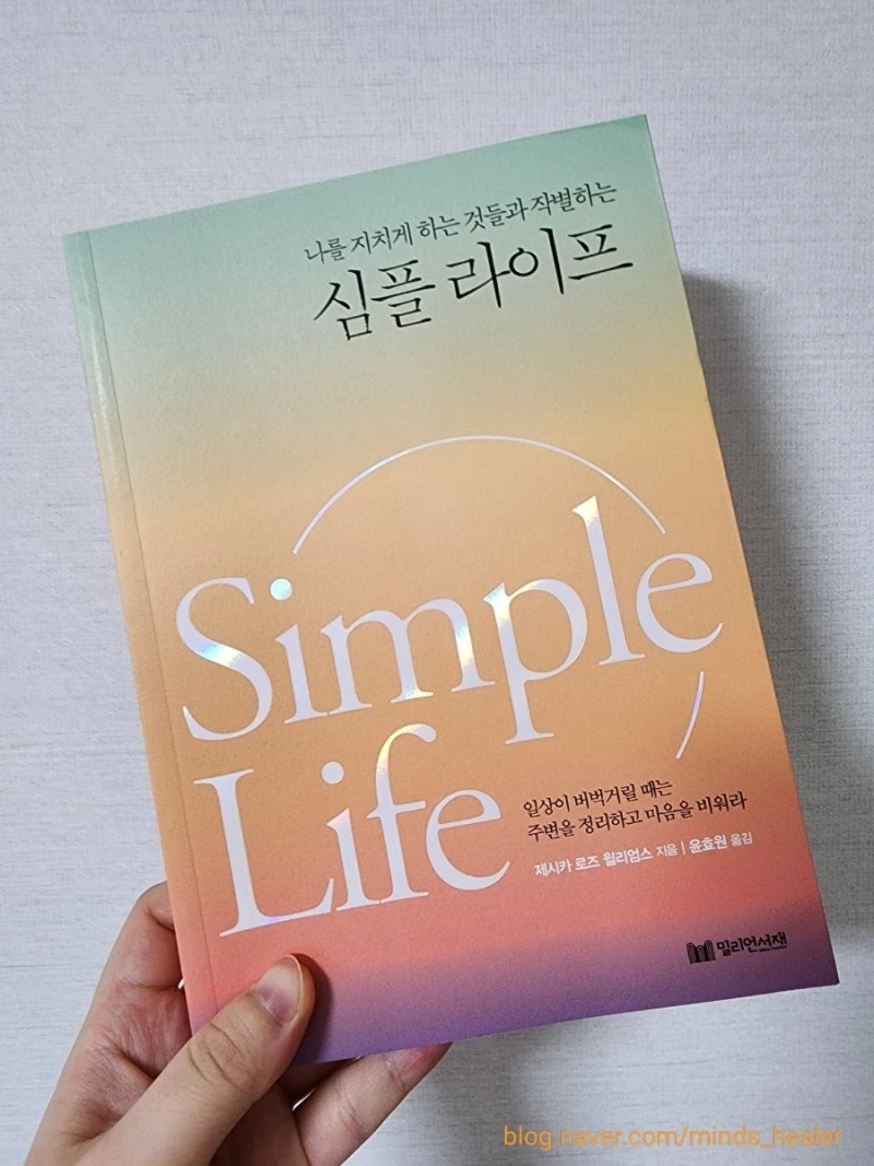 오늘은 주변을 정리하며 마음 다스리기 좋은 에세이, 자기 계발서를 함께 볼까 해요. 바로 제시카 로즈 윌리엄스 작가님의 <나를 지치게 하는 것들과 작별하는 심플 라이프>입니다^^