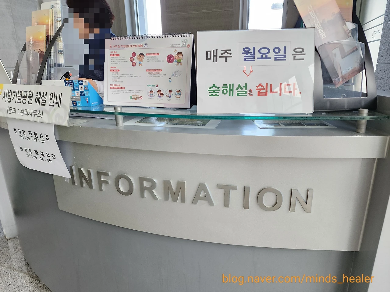 전시관 내에 앉을 곳도 있어요. 아이들과 함께 왔는데, 사방기념공원에 왔는데 너무 덥거나 추우면 사방기념관에서 전시도 보고, 잠깐 앉아있다 나가도 좋을 것 같아요.