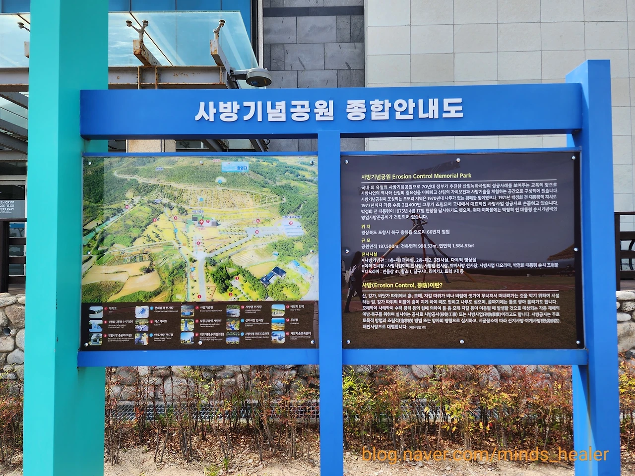 ‘사방기념공원’은 국내‧외 유일 사방기념공원이라고 해요. 산림녹화사업의 성공사례를 보여주는 교육의 장으로 사방사업의 역사와 산림의 중요성을 이해하고 산림의 가치 보전과 사방기술을 체험하는 공간으로 구성되어 있습니다.